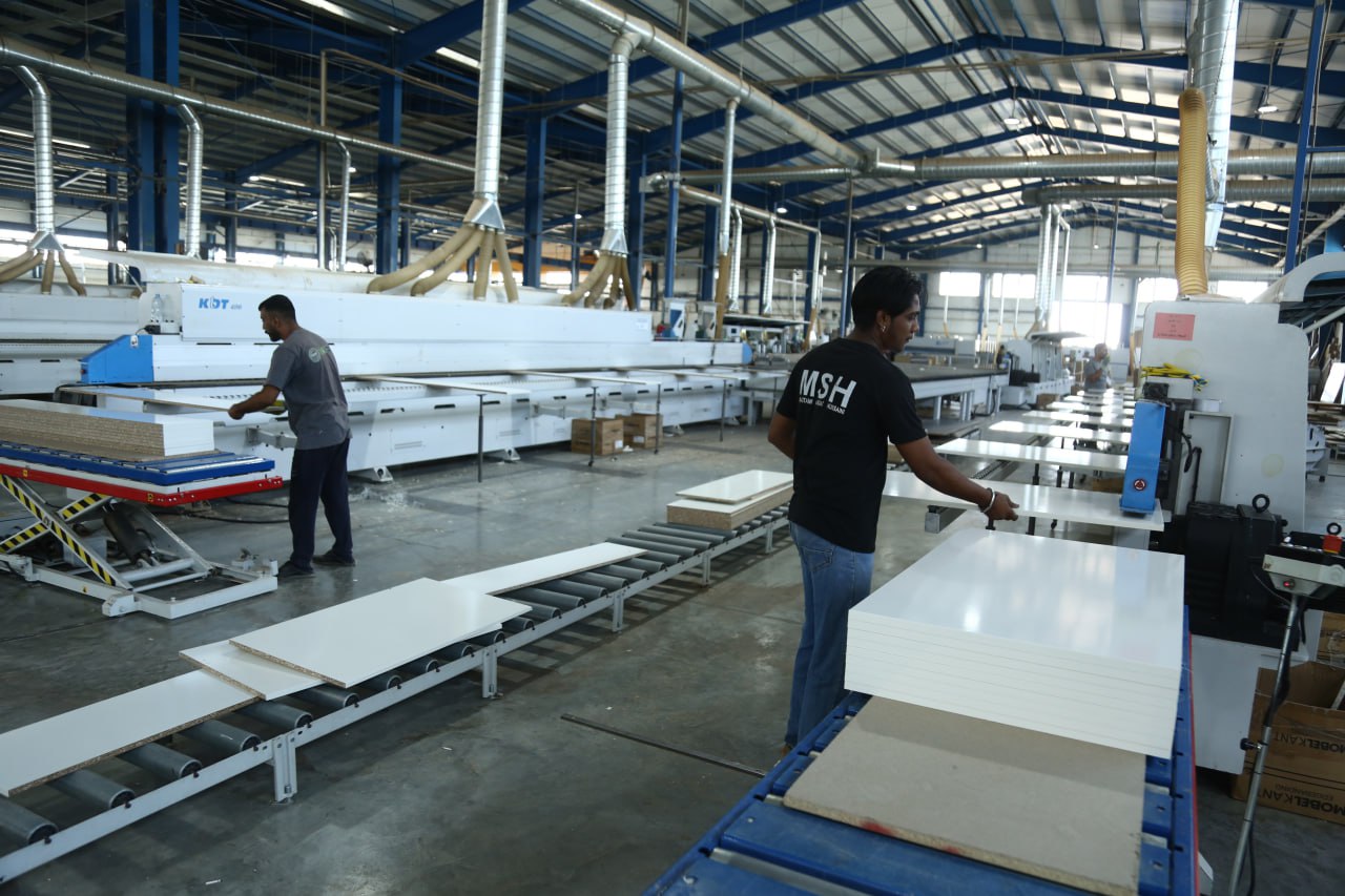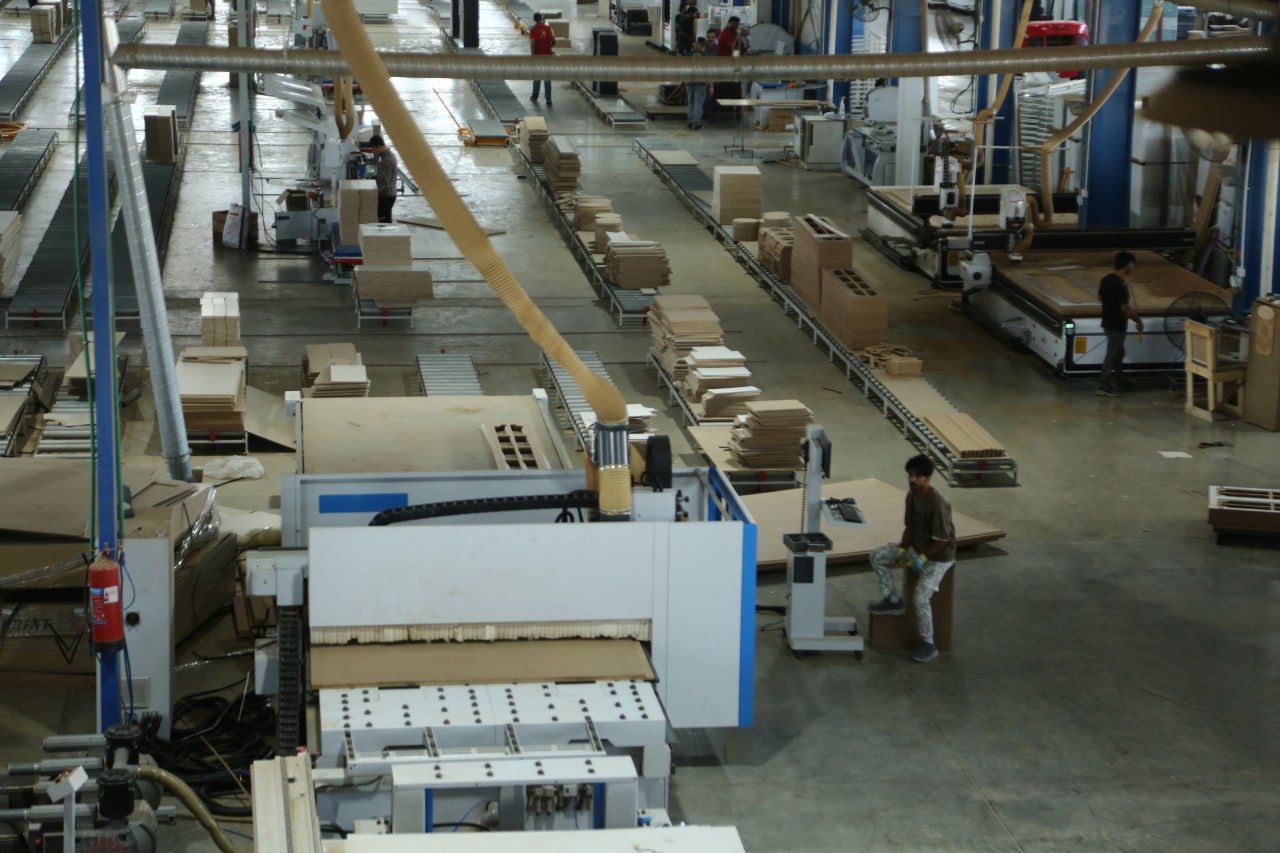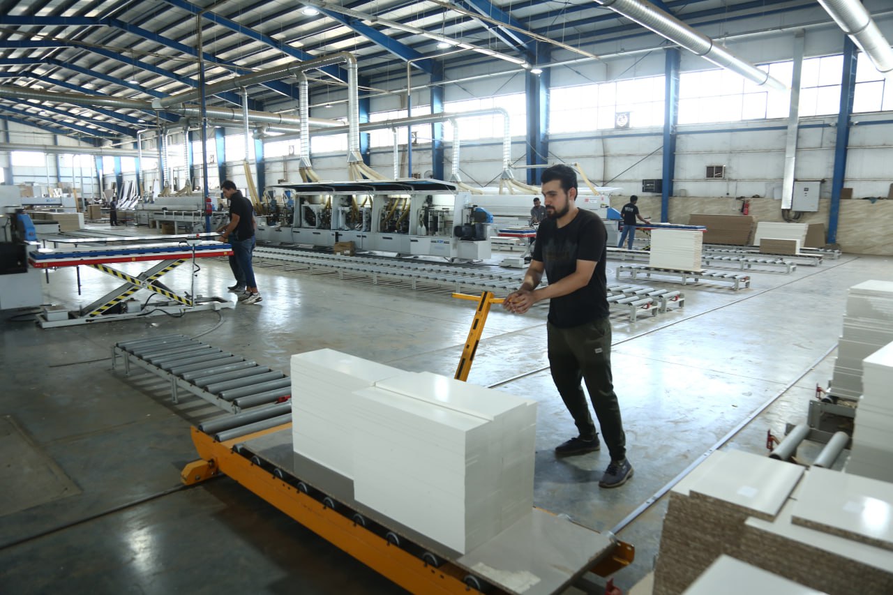 واضاف ان " اول الاضافات كانت من الامور الاساسية في المجموعة ويشكل مفخرة للعراق وهو عملية تصنيع الخشب كمرحلة اولى، وقد بدأنا قبل عام تقريبا المرحلة الاولى من التصنيع من خلال نصب خط انتاجي هو "المكبس" الذي يختص بكبس الورق على الخشب، وهي عملية توفر لنا تقريبا (450 ــ 800) لون ناهيك عن الوان اخرى لا يمكن تحديدها، وهو اجراء يفك قيود الالوان المحددة التي يتم استيرادها من الخارج، والتي تنتهي بالنتيجة الى تصنيع الاخشاب بالوان الاثاث المستورد من الدولة التي تستورد منها الالوان، ولا تعطينا خصوصية في التصنيع، ومن ذلك تمكنا من جعل الالوان والكبس داخل مصانع المجموعة وحصري بنا، وتخلينا عن المدد التي ننتظر بها شحن المواد المستورد او اعتذار الشركات المجهزة عن تجهيز كميات محددة لنا، ومنها تمكنا في المرحلة الاولى من تصنيع الخشب المكبوس، ولدينا حاليا مكبسين طاقتهما الانتاجية مجتمعة تصل الى (3000) طبقة يوميا، كون كل مكبس ينتج (1500) طبقة يوميا، بقياسات تتراوح بين (3.66 سنتمتر X 183 سنتيمتر)، و(210 سنتيمتر X 280 سنتيمتر)".