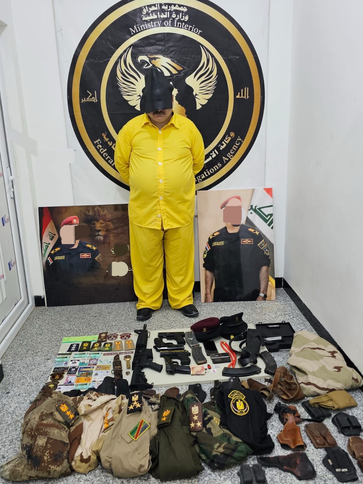 أعلنت وزارة الداخلية العراقية، اليوم الخميس، القبض على منتحل صفة لواء بحوزته أسلحة وباجات مزورة، في كربلاء.