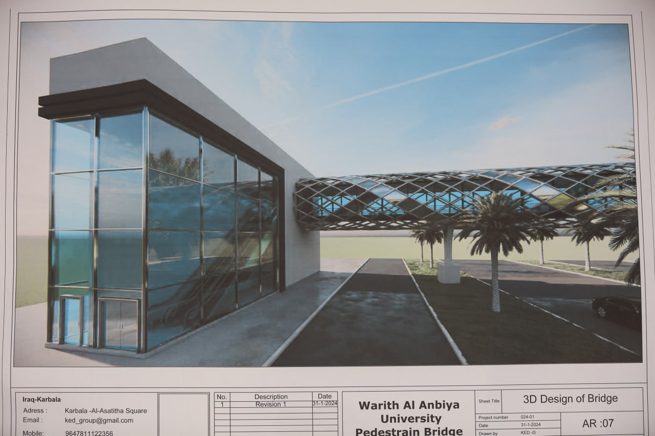 تشيده العتبة الحسينية ... مجسر مشاة جامعة وارث الانبياء ينجز بالكامل خلال الاشهر القريبة المقبلة