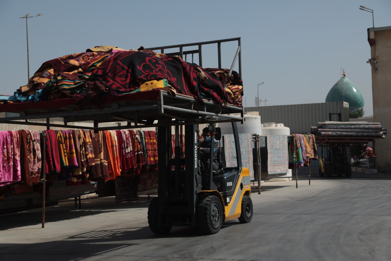 ويقول مسؤول شعبة معمل غسل السجاد في قسم رعاية الحرم الشريف التابع للعتبة الحسينية المقدسة "جاسم محمـد حسن" في تصريح لوكالة نون الخبرية ان "طبيعة عمل الشعبة هو تسلم جميع المفروشات من اقسام العتبة الحسينية، ومدن الزائرين، ومستشفيات وجامعات العتبة الحسينية، وتشمل أنواع كثيرة منها السجاد، والكاربيت، والمدات، والشراشف، والبطانيات، والفرش، والستائر، والخيم، وسجاد الصلاة، وقمصان المتطوعين (اليلك)، والمناشف، والديباج، واغطية المخدات، واطقم القنفات، ولكل نوع من تلك القطع يوجد ملاك متخصص لغسله وتجفيفه، كما لدينا خطوط انتاج حديثة ومتطورة تضم ماكنة إزالة الاتربة والغبار قبل ادخال القطعة الى مرحلة الغسل، وتأتي المرحلة الثانية وفيها ماكنة الغسل التي توجد فيها "فرشاة الغسل، والشطاف، والمرحلة الثالثة التجفيف الذي تصل نسبته الى (95) بالمئة، وتنشر بعدها لمدة قصيرة لا تتعدى ساعة واحدة وتصبح جاهزة للاستخدام".
