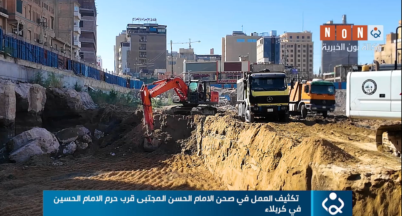 تستمر الكوادر الفنية العاملة في صحن الالمام الحسن المجتبي في باب قبلة الامام الحسين "عليه السلام" بالعمل على مدار الساعة حيث كثفت هذه الكوادر عملها في حين اظهرت الصور الرمال الصفراء اثناء عمليات الحفر