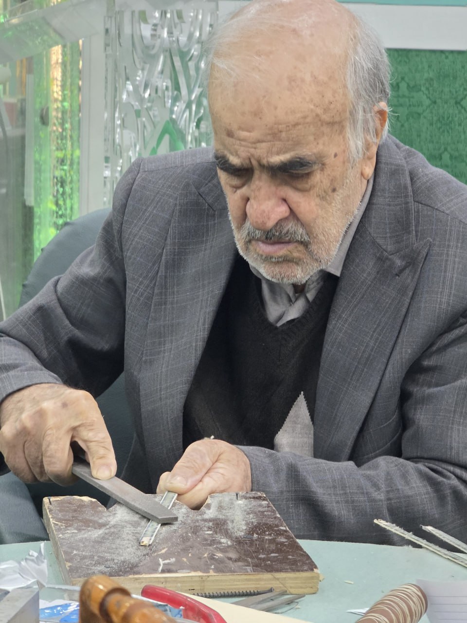 واضاف ان "الميزة الاخرى التي يتميز بها هذا المنبر انه صنع بطريقة لم يستعمل في مسمار واحد، بل اعتمد في طريقة صناعته ما سمى بـ"التعشيق" او التركيب اي اشبه بما يسمى اليوم بلعبة "الميكانو"، وهذا الامر يعطي ميزة تفكيكه وتركيبه ونقله، لاسيما ان البناء القديم للعتبة الحسينية كان يضم دهاليز وابواب ضيقة وتصعب معه عملية الصعود والنزول، ويصعب معها ادخال مثل هذا المنبر بقياساته المصنوع منها"، منوها الى ان" الشروع باعادة ترميم وصيانة المنبر بدأ في العام (2015) لاننا لم نكن نمتلك الخبرات الكافية كونه صناعة وحرفة غير عراقية، وهو فن ايراني كان معمول به منذ زمن الدولتين القاجارية والصفوية ولغاية يومنا هذا، وكنا نبحث عن شخص خبير ومهاري يساعدنا في اعادة وترميم هذا المنبر ووجدنا الخبير الايراني المخضرم وشيخ المهنة "سامي صفر قهرمان" الذي يتجاوز عمره (85) عاما، وما ان تلقى دعوتنا حتى رمى مرضه والصعاب التي تواجهه خلف ظهره وجاء لخدمة حرم الامام الحسين (عليه السلام)، وبالفعل تعرض الى وعكة صحية في بداية العمل وتجاوزها، وباشر معنا قبل (11) عاما كون العمل يجري على مراحل، والنقوش الموجود على المنبر لا يوجد مثلها في زماننا الحالي، واضطررنا الى استبدالها حيث استخدم في صناعته "عظم العاج" الذي اصبح تحت الحظر الدولي وتمنع المتاجرة به، فاستبدل بعظم الابل الذي هو اشبه بعظم العاج، بعد ان يمر بمراحل عدة ليصبح مطابقا لصيانة هذه القطع، واستبدلنا الفضة بمادة الالمنيوم، كما استبدل الذهب بمادة النحاس"، لافتا الى ان" هناك الوان لأخشاب طبيعية غير موجودة حاليا، فقمنا بتلوين الخشب بالوان تطابق الخشب الاصلي حتى باتت لا يمكن التفريق بينها"، مشيرا الى ان "العمل يحتاج الى خمس مراحل ونحن الآن في المرحلة الثانية، ونحتاج الى ثلاث مراحل اخرى ليكتمل العمل"، مؤكدا بالقول ان" فريق الصيانة هم من اصحاب الحرف، ومع اعادة ترميم المنبر التاريخي، فقد اكتسبوا الخبرات من الخبير الايراني "قهرمان"، وسيرى الزائرون الى المتحف العمل المشترك الذي انجز على يد الخبير الايراني وحرفيو الشعبة من صناعة قطع مفقودة وترميم غيرها، ومن المؤمل انجاز ترميم منبر الخطابة القاجاري بالكامل خلال ثلاثة اسابيع وعرضه في المتحف".
