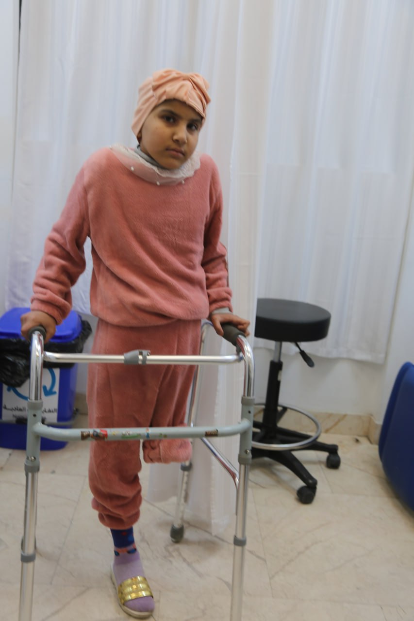 في الجانب الآخر وصف استشاري اورام الاطفال في المستشفى الدكتور "محمـد عبد الواحد" لوكالة نون الخبرية حالة المريضة "شريفة" وبرنامجها العلاجي قائلا ان" المريضة جاءت الى المستشفى وهي مصابة بورم سرطاني خبيث في عظام الفخذ الايسر وكانت للاسف حالتها متأخرة وسبق ان اجريت لها عملية جراحية خارج المستشفى ركبت فيها لها "دعامات وشرائح" (البلاتين)، وهو يؤثر فيما بعد على طبيعة الاستئصال الذي يراد به اجراء عملية جراحية لاستئصال الورم، وباشرنا معها على الفور اجراء الفحوصات واعادة تشخيص "الخزعة"، واخضعناها الى العلاج الكيمياوي، وحصل لها تحسن كبير بعد هذا العلاج"، مستدركا بالقول ان" الاستئصال الورمي وبسبب وجود كسر وتهشم في العظام والشرائح والمسامير "الدعامات" المركبة اضطرنا الى بتر كامل للقضاء على الورم في الفخذ بشكل كامل، لان في مثل هذه الحالة اجراء عملية الاستئصال دون بتر يجعل عملية ارتداد الورم وانتشاره نسبتها عالية جدا، وهي من عواقب الجراحات التي تجري خارج المستشفى قبل مجيء المريض الينا وتشخيص حالته بدقة، حيث يضطر الاطباء في بعض الحالات الى البتر الكامل حفاظا على حياته كونها هي الاهم ولنمنع انتشار الورم ونقلل فرصة ارتداده"، مشيرا الى انها " اكملت حوالي (90) بالمئة من خطة العلاج الكيميائي حيث حدد لها من (4 ــ6) جرعات قبل الجراحة و(12) جرعة بعد الجراحة، وتبقى لها فقط (4) جرعات وستوضع تحت برنامج المراجعة الدورية تحسبا لاي اعراض ارتداد للورم قد تحصل عندها سواء على نفس الورم السابق او في الاورام الثانوية في اي مكان آخر، لاننا نعرف جيدا في مثل هذه الحالات اين يحصل الارتداد ولذلك نتابع حالتها بشكل دوري في اول سنة او سنتين وبعدها تتحسن حالة المريض بشكل كامل وتكون متابعتنا له متباعدة اي مرة او مرتين في العام الكامل".