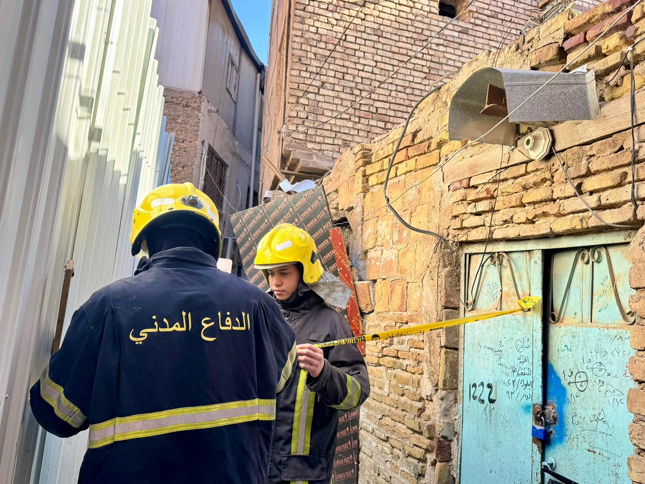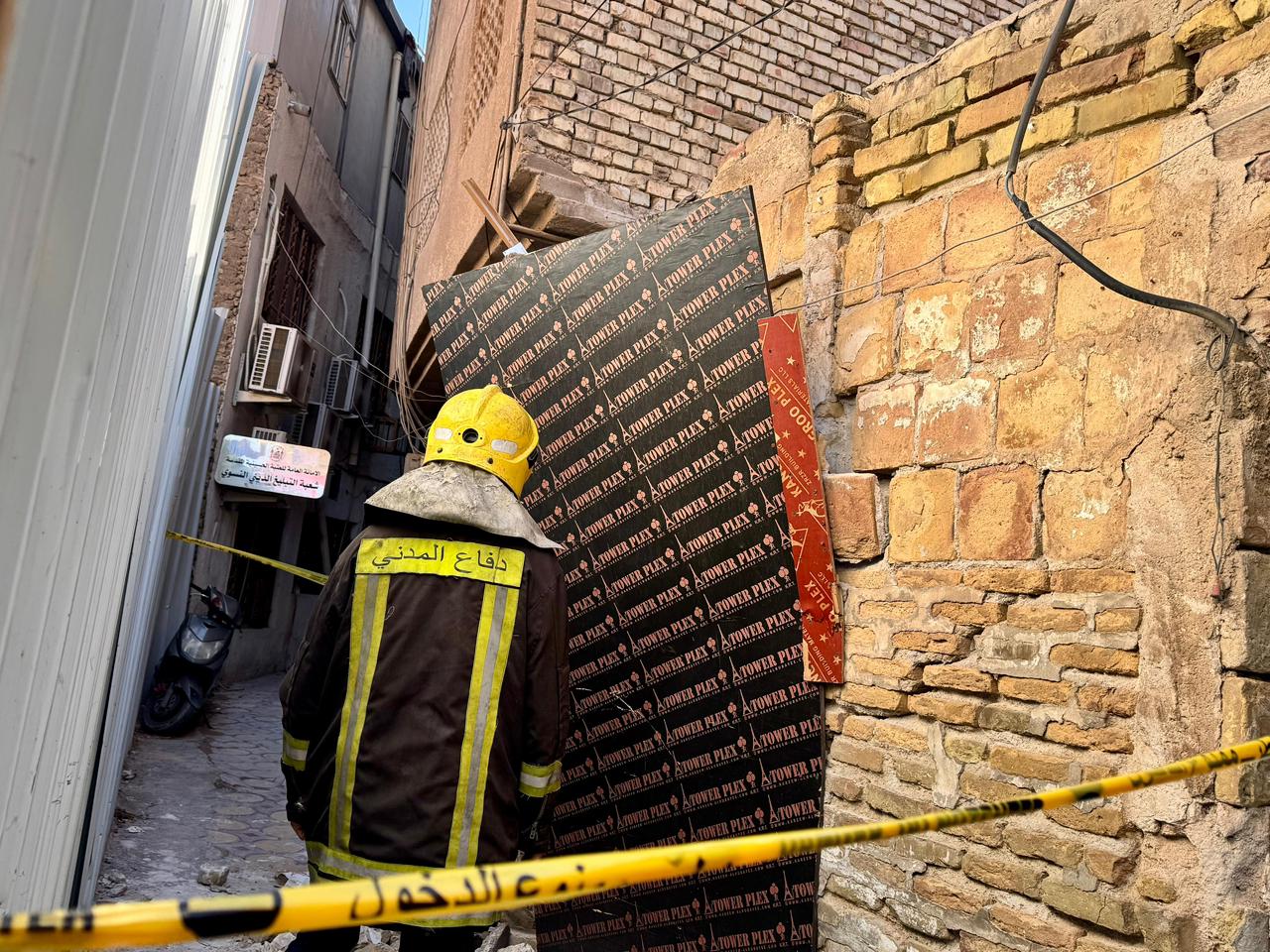 الدفاع المدني في كربلاء يغلق أحد أزقة شارع السدرة تحسباً لخطر الانهيار (صور)
