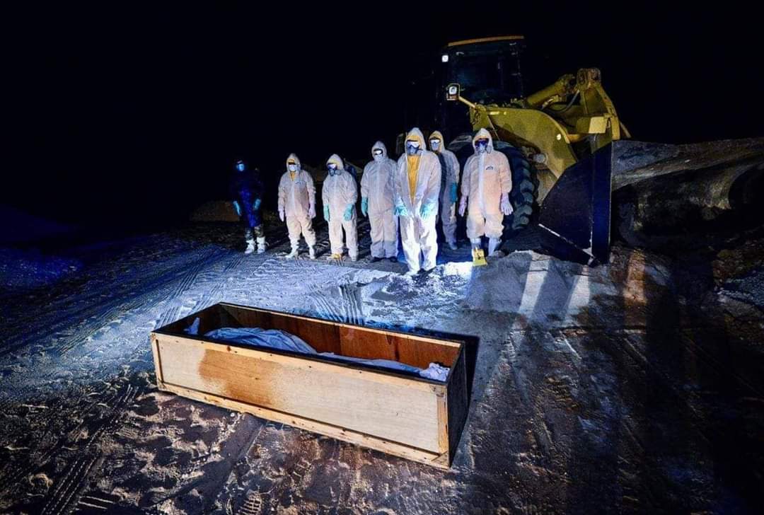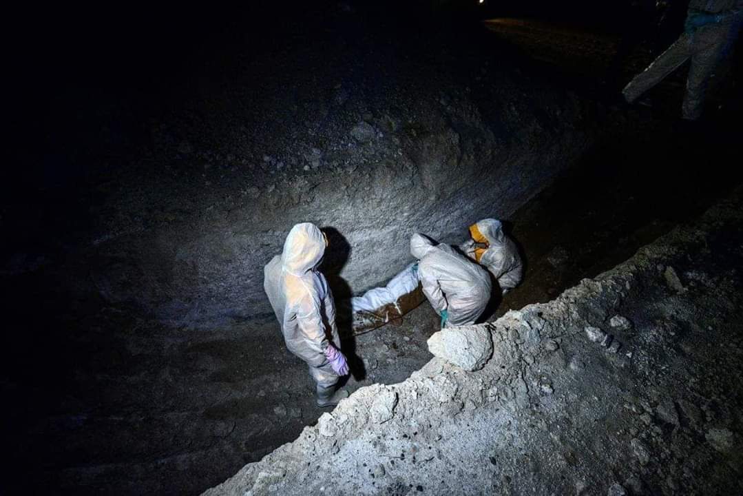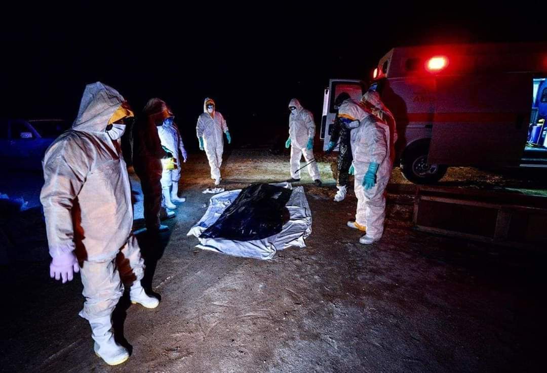 تنشر وكالة نون الخبرية، صوراً لإجراءات دفن جثامين المتوفين جراء فيروس بكورونا في مقبرة "وادي السلام الجديدة" في النجف، من قبل طبابة الحشد الشعبي.