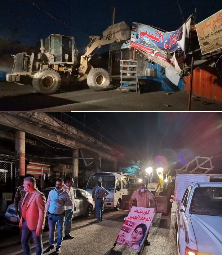 وقالت الأمانة في بيان تلقت وكالة نون الخبرية نسخة منه، إن “ملاكاتها في دائرة بلدية مركز الكرخ قامت بحملة ليلية لإزالة التجاوزات والمشوهات عن شوارع (شارع 6، شارع الرحمانية، شارع الشيخ معروف، شارع العلاوي) وسط العاصمة بمشاركة جميع اقسام الدائرة المذكورة”.