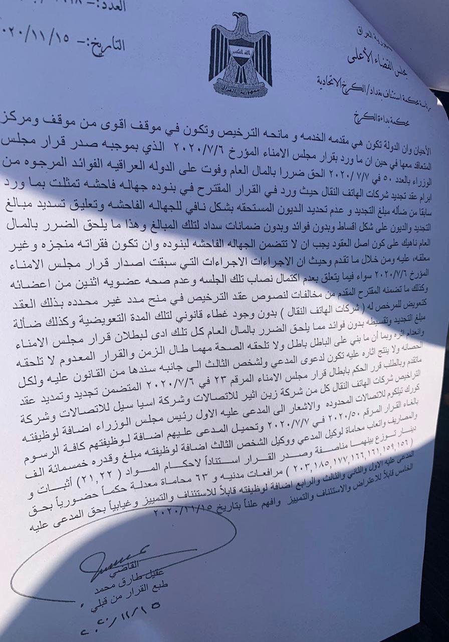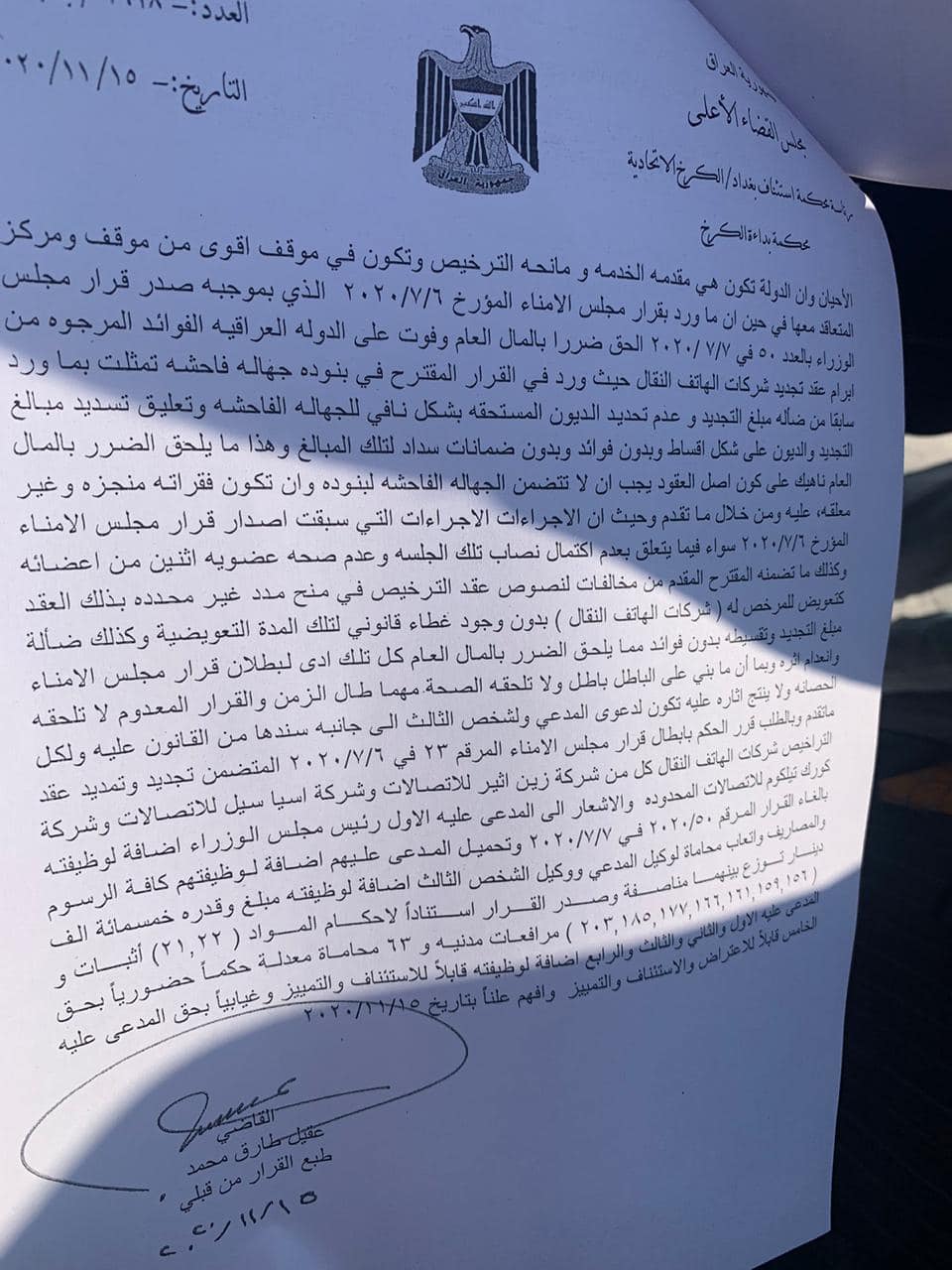 اعلن النائب محمد شياع السوداني صدور قرار قضائي برفض التجديد لشركات الهاتف النقال.