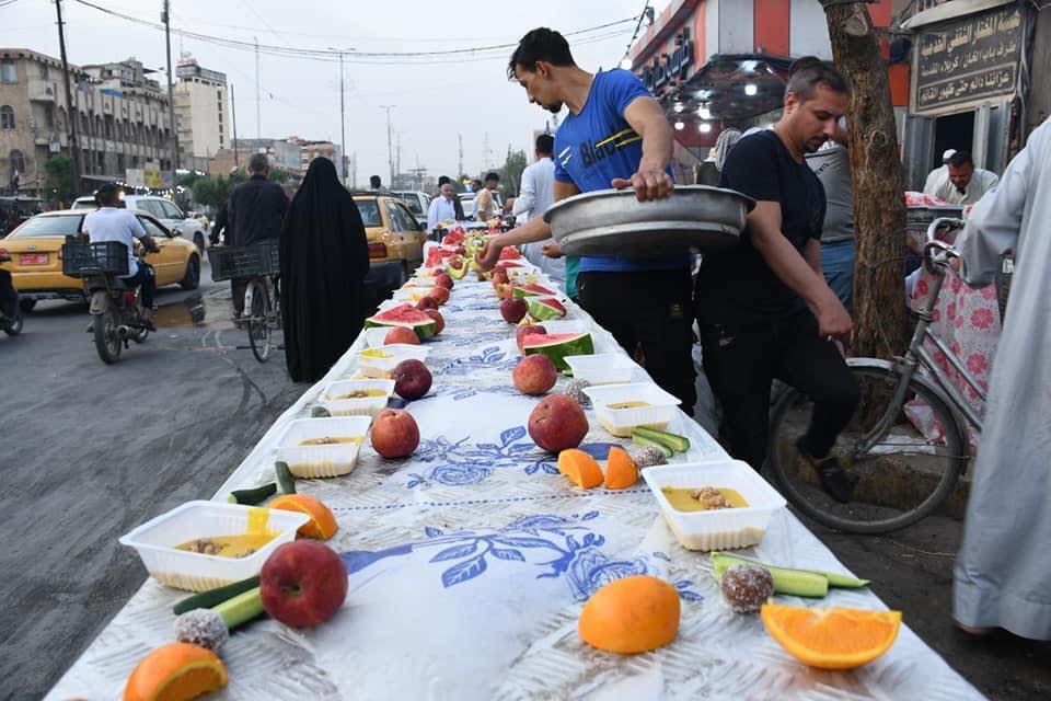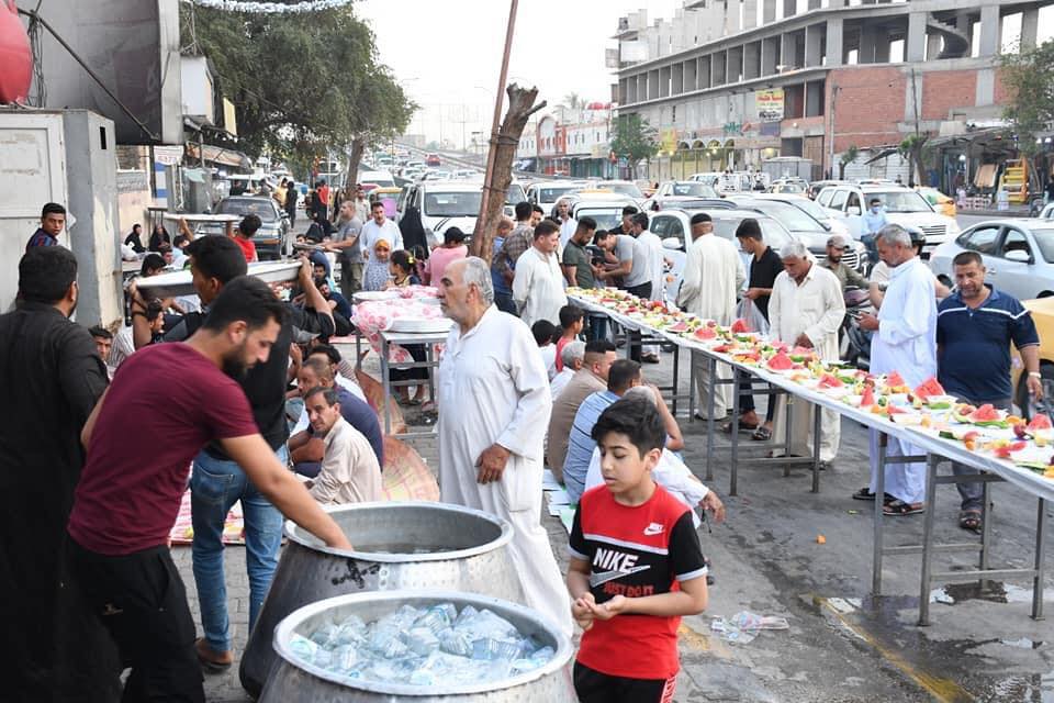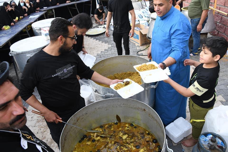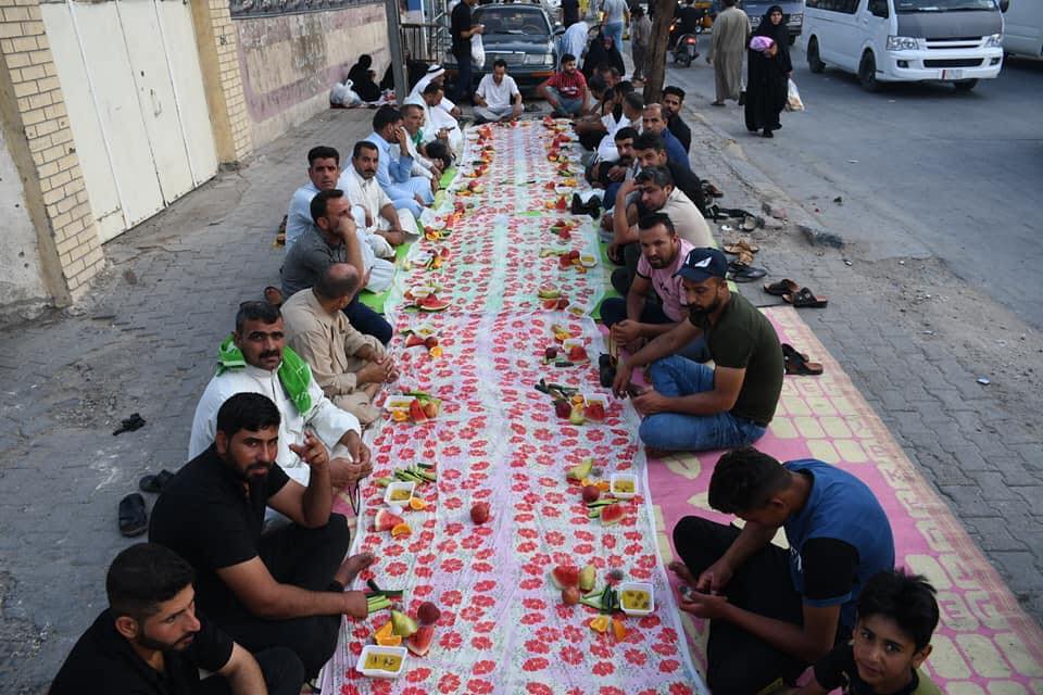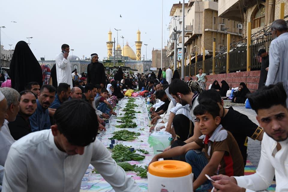 يقدم اهالي كربلاء المقدسة وجبات افطار للزوار القادمين الى زيارة مرقدي الامام الحسين واخيه العباس عليهم السلام من خلال المواكب الحسينية المنتشرة في ارجاء المدينة القديمة