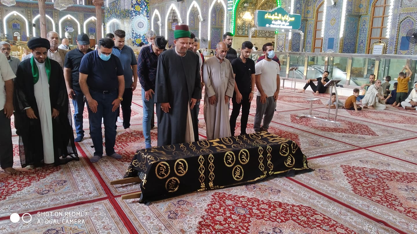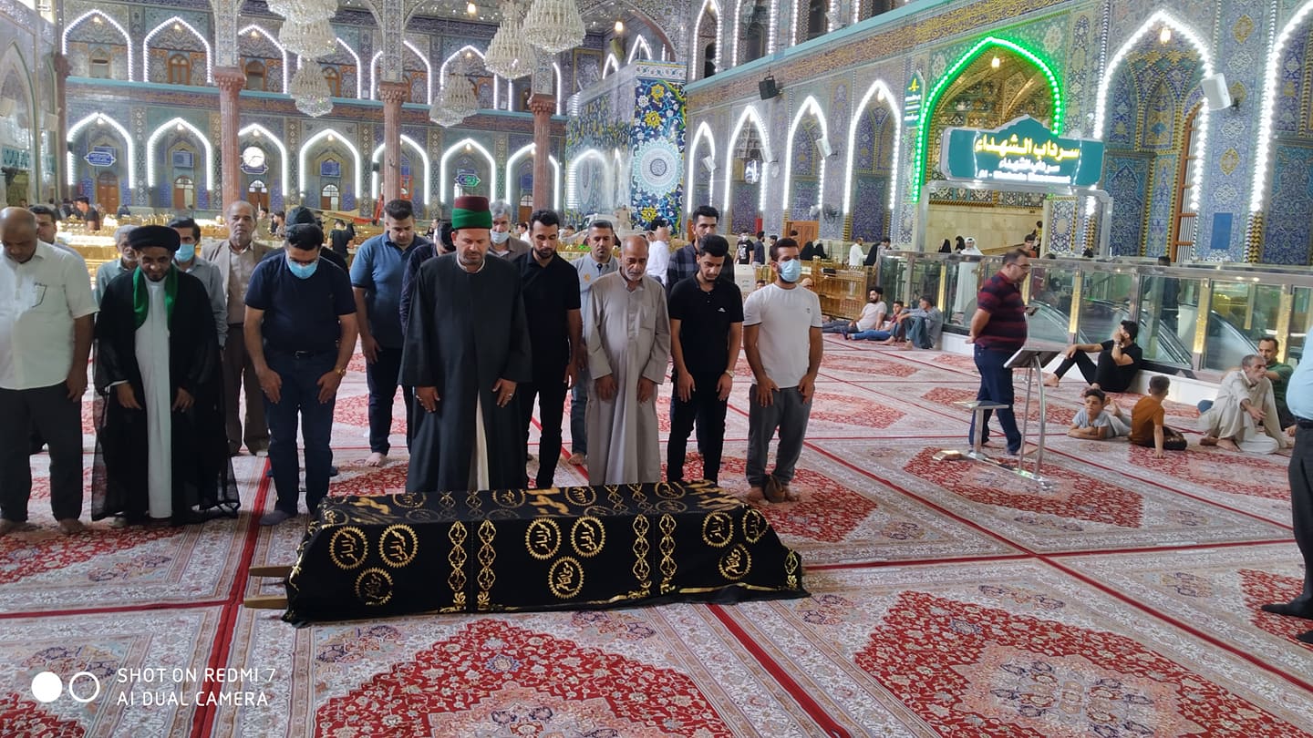 وقد وصل جثمان الراحل الى المراقد المقدسة (الحضرتين الحسينية والعباسية ) حيث ادى المشيعون الصلاة على روحه قبل ان يوارى جثمانه الثرى في مقبرة السلام بكربلاء