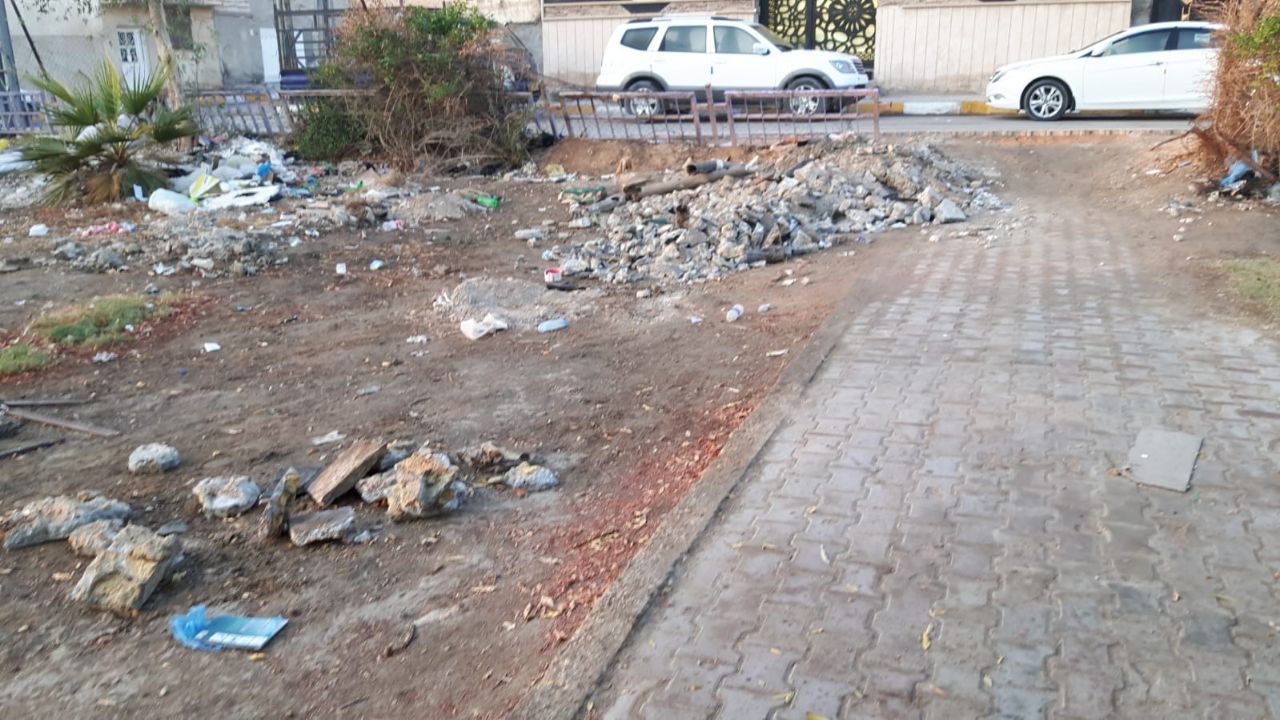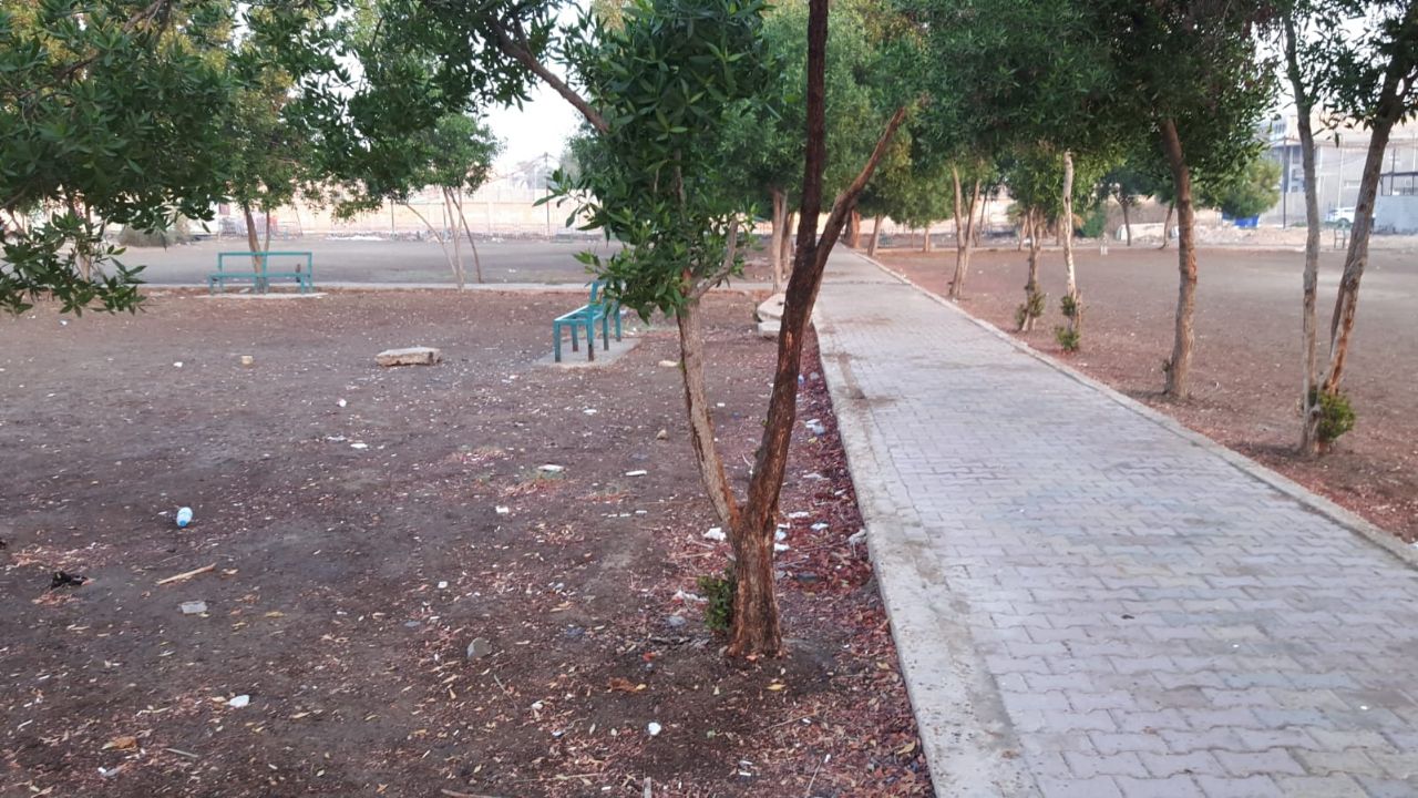 مهملة ولا توجد اية إنارة فيها حتى ان البعض يخاف المشي أو العبور منها لشدة الظلام، لكن بعض البيوت قاموا بوضع مصابيح لانارة قسم من هذه الحديقة القاحلة.