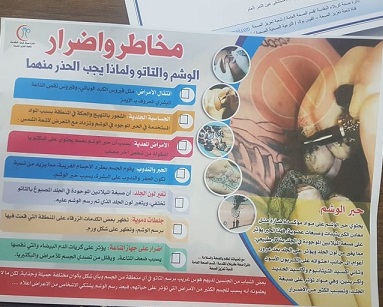وقالت مدير شعبة تعزيز الصحة في قسم الصحة العامة بدائرة صــحة كربلاء الدكتورة شيماء يوسف الوتار لوكالة نون الخبرية ان وفدا من المفوضية العليا لحقوق الإنسان قد اطلع على واقع العمل المقدم للمراة من الجانب الصحي في صحة كربلاء حيث حذرنا من خلال بوسترات تثقيفية من مخاطر وأضرار الرسومات التجميلية (الوشم ،التاتو ) ومايسببه من أمراض فايروسية كالكبد الثلاثي وفيروس نقص المناعة البشري ( الإيدز ) ومخاطر الحمل والولادة للقاصرات في سن مبكر "