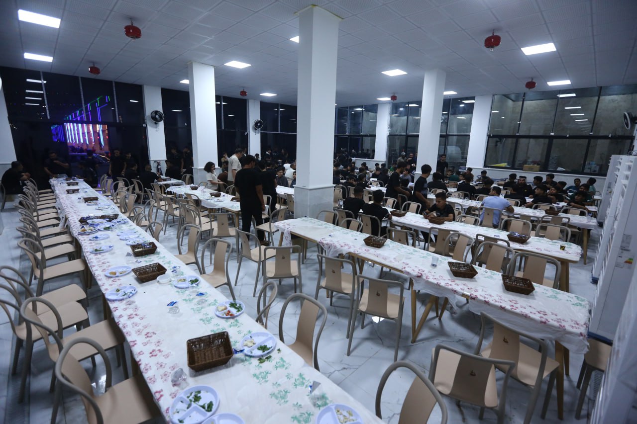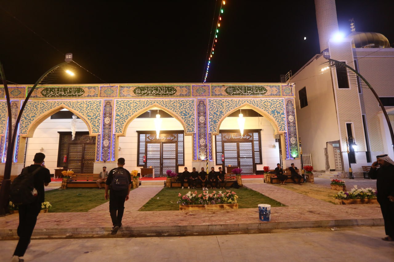 وعندما تولدت القناعة بانشاء مدينة خدمية متكاملة للزائرين بدأ العمل باستملاك الارض هكذا يصف "الفياض" اولى الخطوات ويضيف " تمكنا من شراء الارض بمساحة (10) دونمات واستملكت لنا، واحلناها الى مكتب هندسي ليباشر المهندسون فيه باعداد التصاميم وفق الطراز والعمارة الاسلامية الذي تشاهدونها لخصوصية المناسبات وعلاقة المواكب بالقضية الحسينية، وشاركنا فريق هندسي معماري متخصص منهم اساتذة من جامعتي الكوفة وبابل، وانجز التصاميم بوقت قياسي بعد ان الحينا عليهم باكماله لغرض ادخال المشروع الى الخدمة في الزيارة الاربعينية، واحيل الى التنفيذ وباشرنا بالعمل في شهر كانون الاول من العام الماضي (2024)، وجرى الامر على وجبتي عمل يوميا، وبالفعل انجز بناء المدينة خلال (7) اشهر فقط، وتتكون المدينة من (38) مضيف وهي قاعات كبيرة سميت كل واحدة منها باسم احد الائمة الاطهار، وكل مضيف مؤثث بأسرة وخزانة حديدية (لوكر) ليضع الزائر اغراضه فيها بعد ان يتسلم سريره ومفتاح الخزان، ومكيف بالتبريد، كما تحتوي على مسجدي السيدة خديجة الكبرى وابو طالب (سلام الله عليهما) وبنائهما بطراز حديث ومساحة كل منها (400) متر مربع ويستوعبان مئات المصلين في وقت واحد، كما تحتوي المدينة على مطعمين ومطبخين في جناحين طاقتهما الاستيعابية مجتمعة (1600) زائر، وتوجد فوقهما طبقة ثانية مخصصة لتوزيع "الآيس كريم"، و"العصائر"، و"المثلجات" وهي اطعمة وسوائل تساهم في تبريد اجساد الزائرين في هذه الايام التي تشهد حرارة مرتفعة جدا، ولدينا ايضا اربع افران تصنع "الصمون"، و"البيتزا"، و"المعجنات"، وتحتوي المدينة على معمل لانتاج الثلج متكامل، ومحطة تحلية وانتاج الماء النقي (RO) بمقدار (12) الف لتر خلال ساعة او ساعتين، ونصبنا مفرزة طبية بالتعاون مع جامعة الكفيل داخل المدينة بعد ان جهزناها بالادوية والمستلزمات الطبية التي يحتاجونها من احد مذاخر النجف الاشرف، وبهذه الطريقة والتقنيات وفرنا كل ما تحتاجه المدينة لتقديم الخدمات للزائرين".