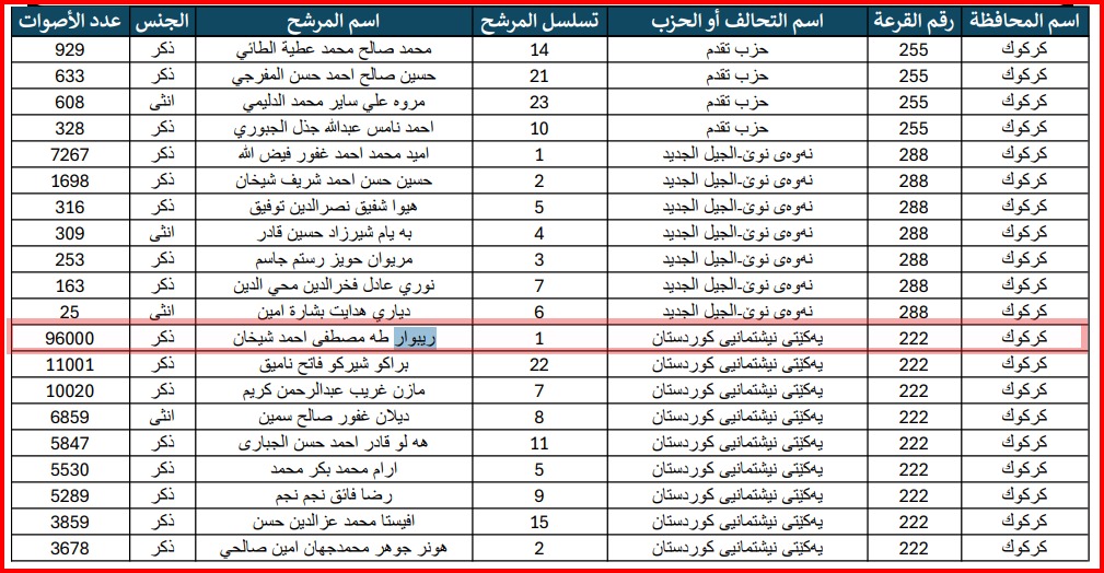 وكان طه، وهو محافظ كركوك الحالي، قد حصد أكثر من 96 ألف صوت لوحده، في انتخابات مجلس النواب الجديد، وهو أعلى عدد أصوات يتحصل عليها مرشح، رغم أنه لا يمتلك أي نفوذ في بغداد صاحبة القاسم الانتخابي الأعلى على مستوى عدد المقاعد والأصوات والناخبين.