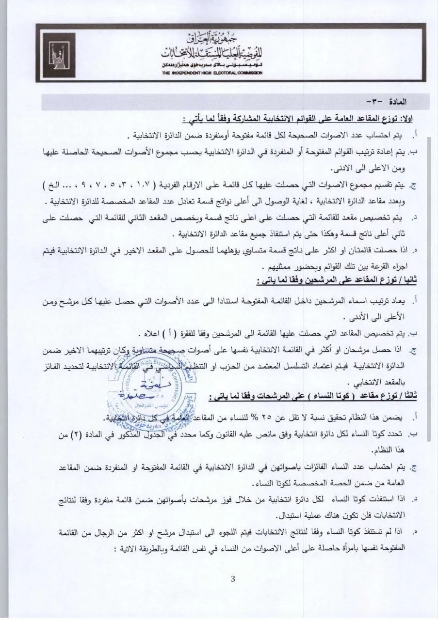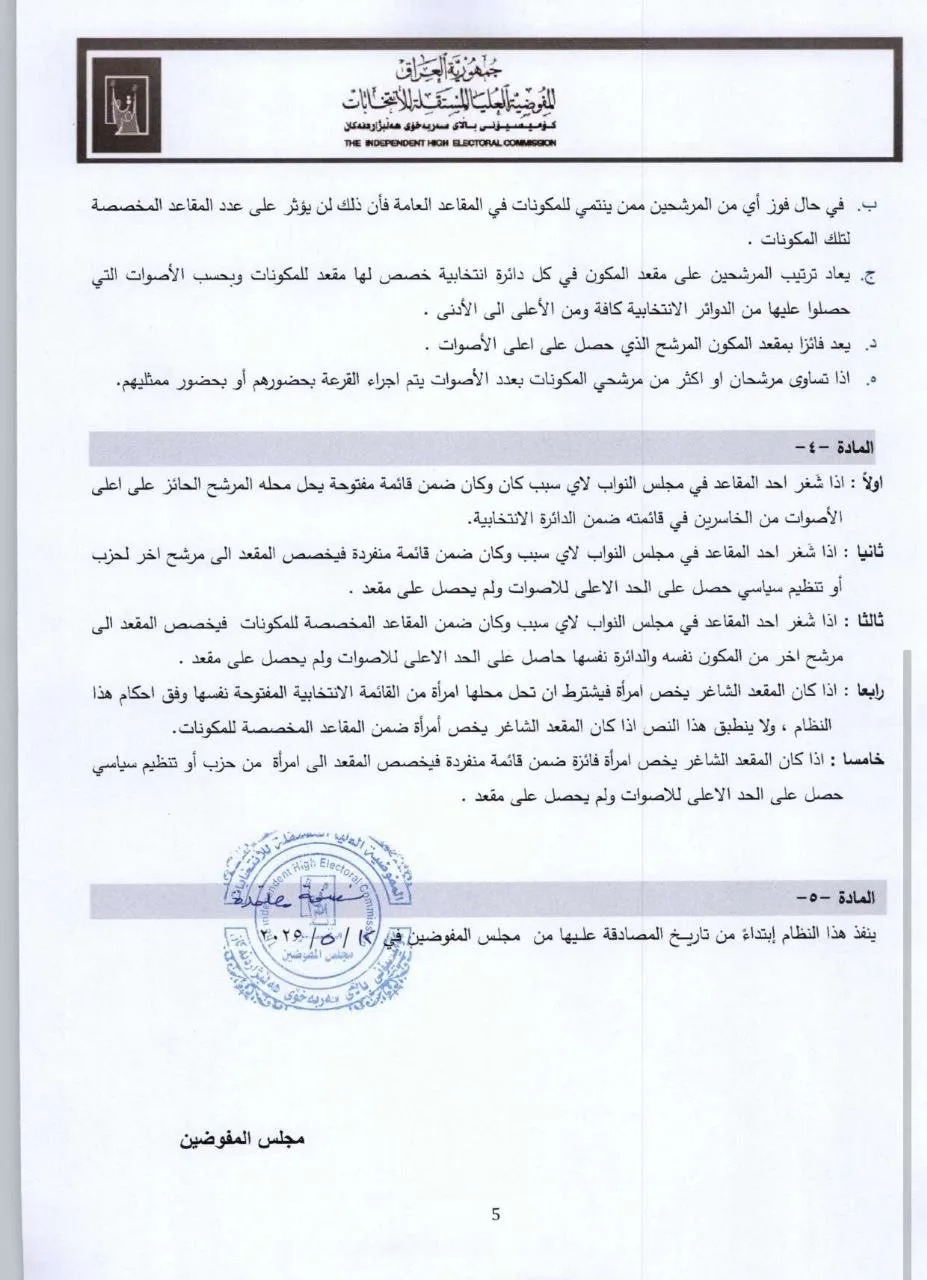 كما أوضحت المفوضية كيفية ملء المقعد الشاغر في الحالات المختلفة، واستبدال أعضاء مجلس النواب، إلى جانب مجموعة من الأحكام العامة.