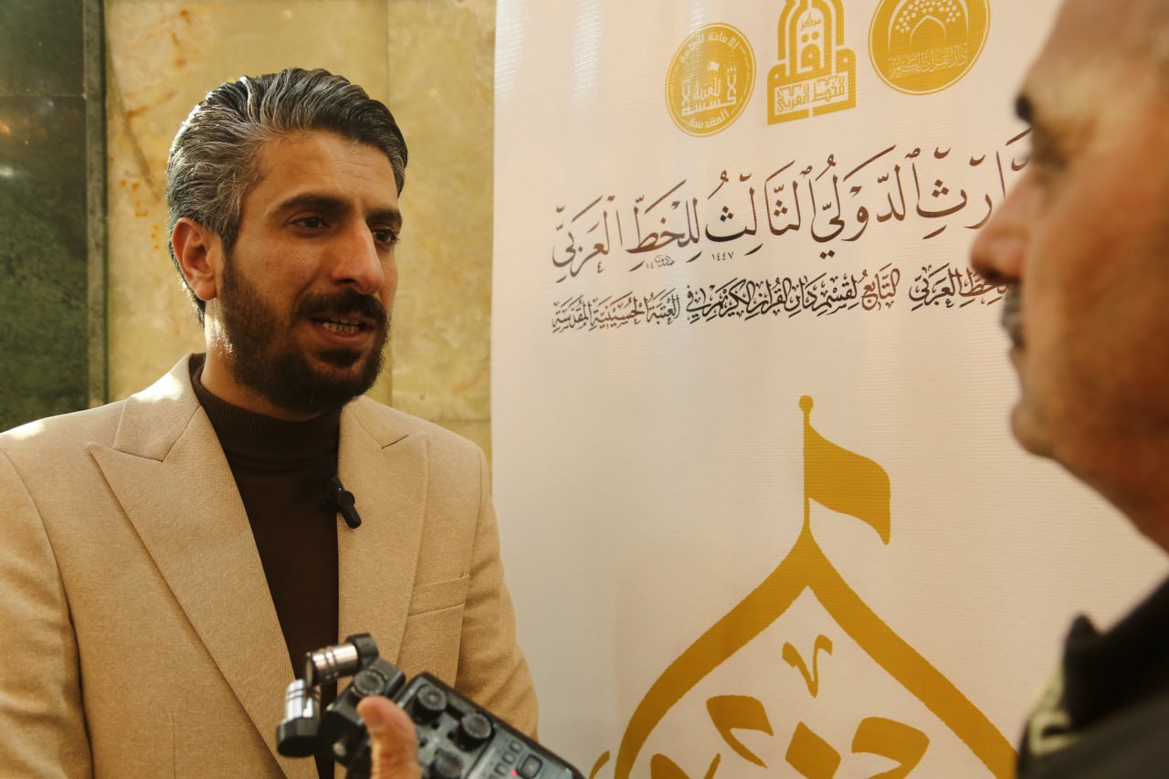 واضاف ان "الدورات السابقة الاولى والثانية كانت متميزة ومنها تنامت المسابقة بشكل كبير وحفزت الخطاطين على المشاركة، حيث كان عدد المشاركين في الدورة الاولى (113) مشارك من عشرة دول عربية واسلامية، بينما كان العدد في الدورة الثانية (180) مشارك من (12) دولة، اما هذه الدورة فصار العدد اكثر من (190) مشارك من (14) دولة عربية واسلامية، ناهيك عن الخطاطين العراقيين"، مبينا ان" الهدف من اقامة المعرض هو الحث على الاستكتاب لاهل بيت النبوة (صلوات الله عليهم) وتعريف الناس بثقافتهم ومعارفهم وعلومهم من خلال هذا الفن الذي له ارتباط مباشر باهل البيت (عليهم السلام)، كما ان اللغة العربية هي لغة القرآن والخط العربي هو الصورة البصرية الجميلة، ويستمر المعرض لمدة (7) ايام وفيه فعاليات تتضمن تكريم (20) خطاط وشاب رائد بجائزة (ابن البواب) للابداع للخط العربي وهذه الدورة الثالثة التي يكرم بها الرواد والشباب، كما سيتم تكريم الوفود المشاركة حيث كان في المسابقة تحكيم دولي من تركيا وايران والبحرين ودول اخرى عربية واسلامية"، مستدركا بالقول ان" الخطاطين العراقيين لهم الثقل الاكبر في هذا المهرجان".