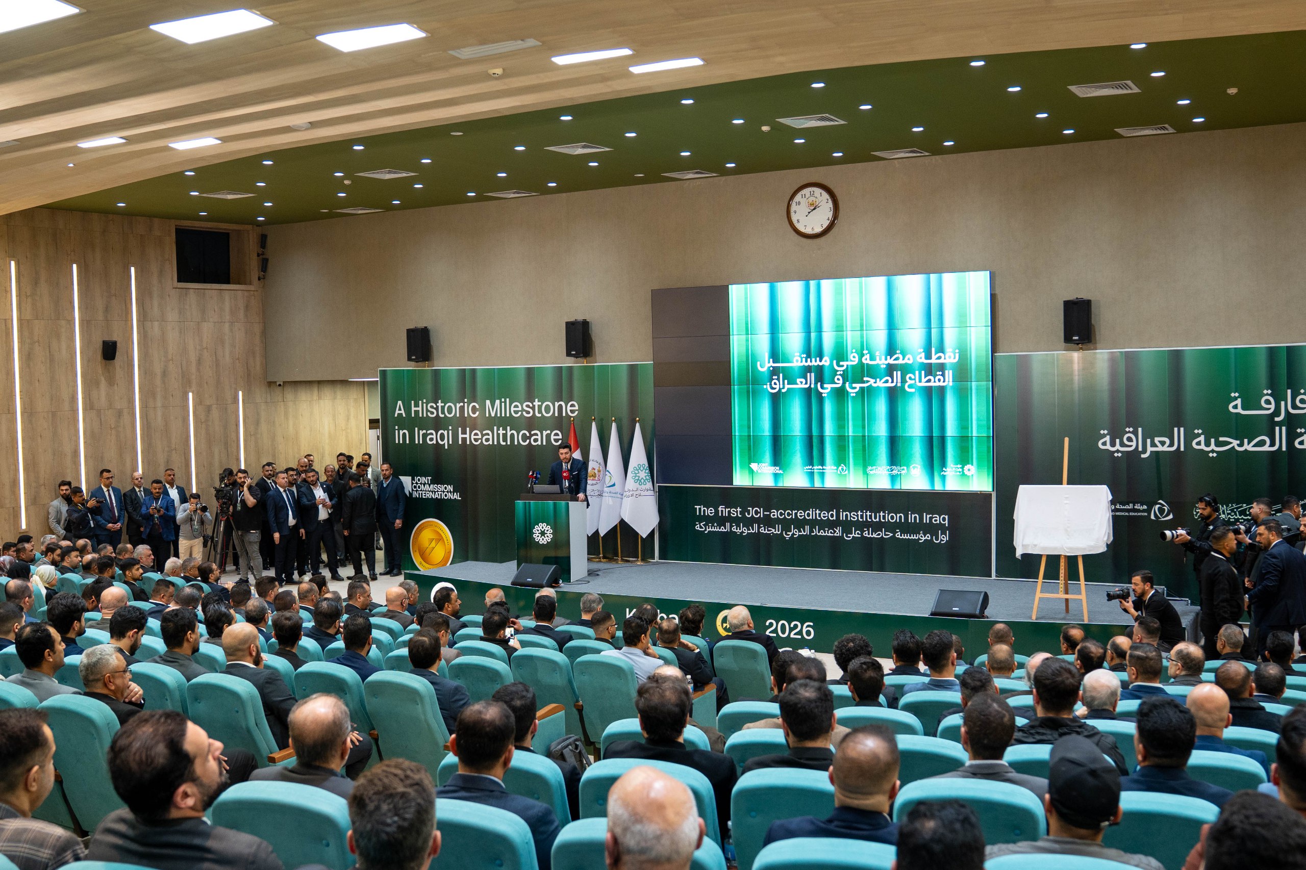 وتابع المتولي الشرعي للعتبة الحسينية المقدسة، ان "تلك المبادئ التي انتهجتها الإدارة العليا في العتبة الحسينية المقدسة للوصول الى هذا المستوى من الانجاز (هذه الشهادة وفق المعايير الدولية) كما عرفت أنه اكثر من 1100 معيار"، متسائلاً: "الآن كيف تحقق هذا الإنجاز؟"، مبيناً "أوصي الأخوة اننا نذكر ونتعرض الى هذا الانجاز لا افتخاراً بل تثميناً للجهود التي قدمها الأخوة جميعا الذين اشتركوا، وتحفيزاً للآخرين، ان هناك قدرات يمكن ان توصل للآخرين الى هذا المستوى الانجاز العالمي"، مؤكداً، انه "في هذا البلد العزيز وهذه الكفاءات الطبية الكبيرة نستطيع ان نحقق ونصل الى هذا السقف والى هذا الطموح، ليس هناك مريض بالعراق بل مرضى من خارج العراق، نحن لا ننسى ايضا الأخوة من الدول المتعددة الآن الاطباء في بلدنا يشتركون مع الاطباء العراقيين من عدة دول في تقديم هذه الخدمة النوعية المتطورة سواء كان في مستشفى الأورام أو بقية المستشفيات".