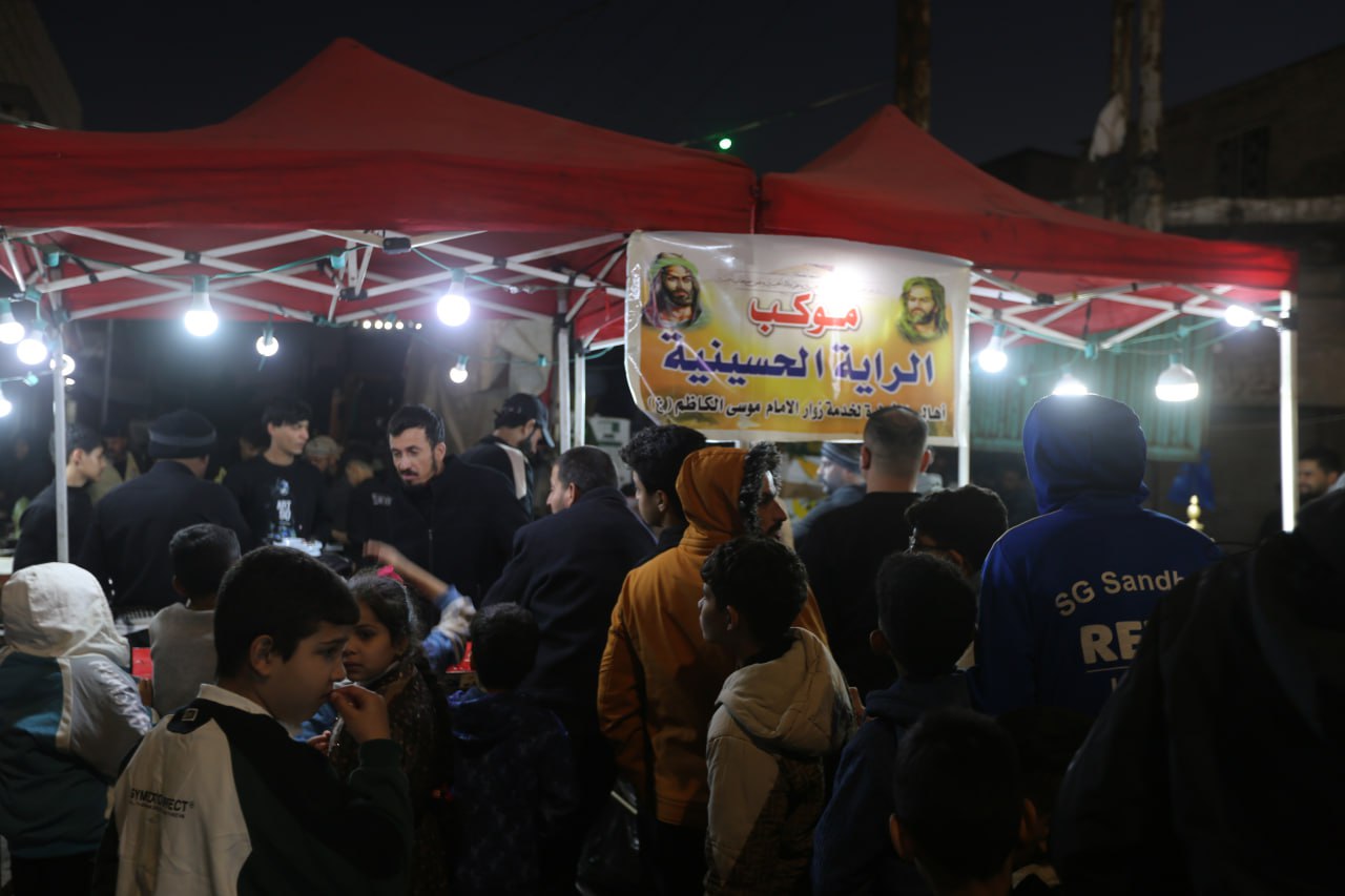 ويستمر "ابو رضا" بسرد حكايتهم مع الخدمة واقامة الشعائر قائلا ان" بيوتنا تتحول الى بيوت عزاء في مناسبات استشهاد الائمة الاطهار (عليهم السلام)، وترى السواد يغطي البيوت والمحاضرات ومجالس اللطم تنعى الائمة الاطهار، ونبدأ خدمتنا في كربلاء المقدسة حيث نمتلك حسينية هناك من يوم (18) صفر الى ان ينتهي العزاء بالكامل، اما في الكاظمية المقدسة التي نمتلك فيها حسينية خاصة للرجال واخرى للنساء ايضا في داخل الزقاق ونقدم خدمتنا في الشارع العام قرب ساحة الزهراء فجئنا منذ (5) سنوات لتقديم الخدمة واقامة العزاء المحافل القرآنية والمحاضرات الدينية ونقدم خدمتنا في الكاظمية حوالي (6 ــ 7) ايام حسب حركة الزائرين، وكذلك في ذكرى استشهاد الامام محمـد الجواد (عليه السلام)، ونقدم يوميا للفطور كباب اللحم المشوي او الاجبان بانواعها او "قيمر العرب"، ونقدم وجبة خفيفة مثل الباقلاء او اللبلبي كون الزائر يحتاجها لتدفئة الجسم بين الافطار والغداء، وفي وجبة الغداء نقدم اما تشريب اللحم او التمن والمرق او الكباب المشوي، وفي العشاء نقدم الدجاج المشوي والشاورما، وفي آخر يومين حيث تكون ذروة الزيارة ويصبح الحضور مليوني نستمر بتقديم الوجبات على مدار اليوم دون انقطاع، ونطعم خلال ايام الخدمة مئات الالاف من الزائرين، ويقدم الخدمة في الموكب بين (25 ــ 30) خادم دون كلل او ملل، كما نفسح المجال الى بعض المعارف والاقارب والاصدقاء بالمشاركة بتقديم الخدمة، وكذلك بعض الاشخاص الذين يريدون نيل الاجر والثواب او من لديهم حاجة يريدون تسهيلها من الله بشفاعة صاحب الذكرى".