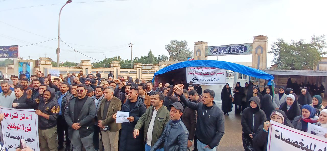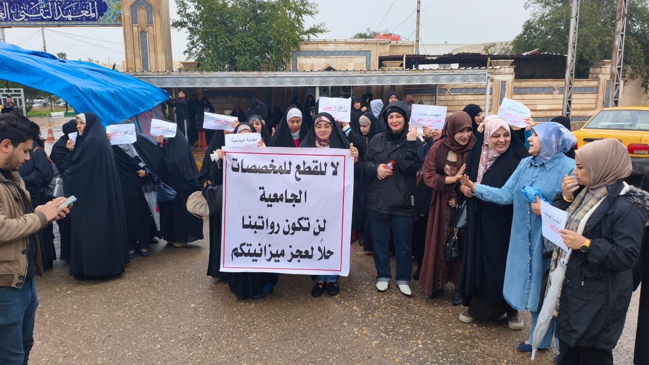 "نطالب بتنفيذ القانون".. معتصمو ميسان الجامعيون يرفضون حجب مخصصاتهم ويواصلون احتجاجهم