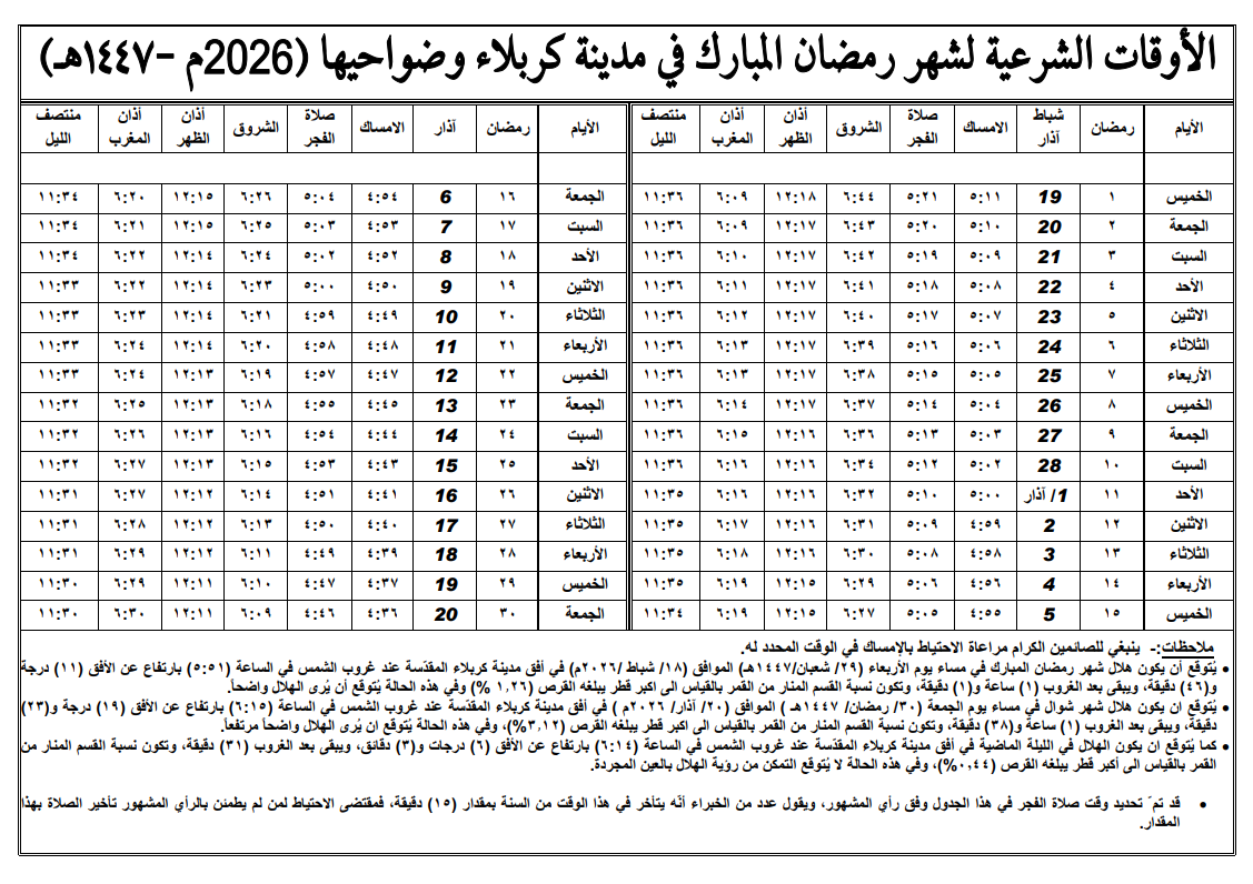 وتنشر وكالة نون الخبرية نسخة من الامساكية الخاصة بمحافظة كربلاء المقدسة كما منشورة في الموقع الرسمي لمكتب السيد السيستاني.
