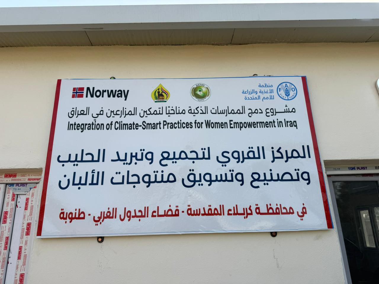 شهدت محافظة كربلاء المقدسة افتتاح المرحلة الثانية من مشروع دمج الممارسات الذكية الممول من قبل المملكة النرويجية لدعم المزارعين وتمكينهم مناخيا في العراق، بالتعاون مع منظمة "الفاو" للاغذية والزراعة التابعة للامم المتحدة وتضمنت المرحلة الثانية افتتاح مركزين جديدين في منطقي الرجيبة والعامرية ليرتفع عدد المراكز الكلي في محافظة كربلاء المقدسة الى (7) مراكز لتجميع وتصنيع الحليب، كما جهزت المزارعين بمرشات الري الثابتة ومواد علفية تستخدم لاول مرة في محافظة كربلاء تتميز بقيمتها الغذائية العالية ونسبة البروتين المرتفعة وتساعد في زيادة انتاج الحليب"،
