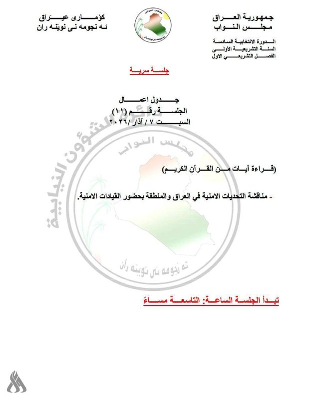 البرلمان يعقد جلسته السبت المقبل لمناقشة التحديات الأمنية في العراق والمنطقة