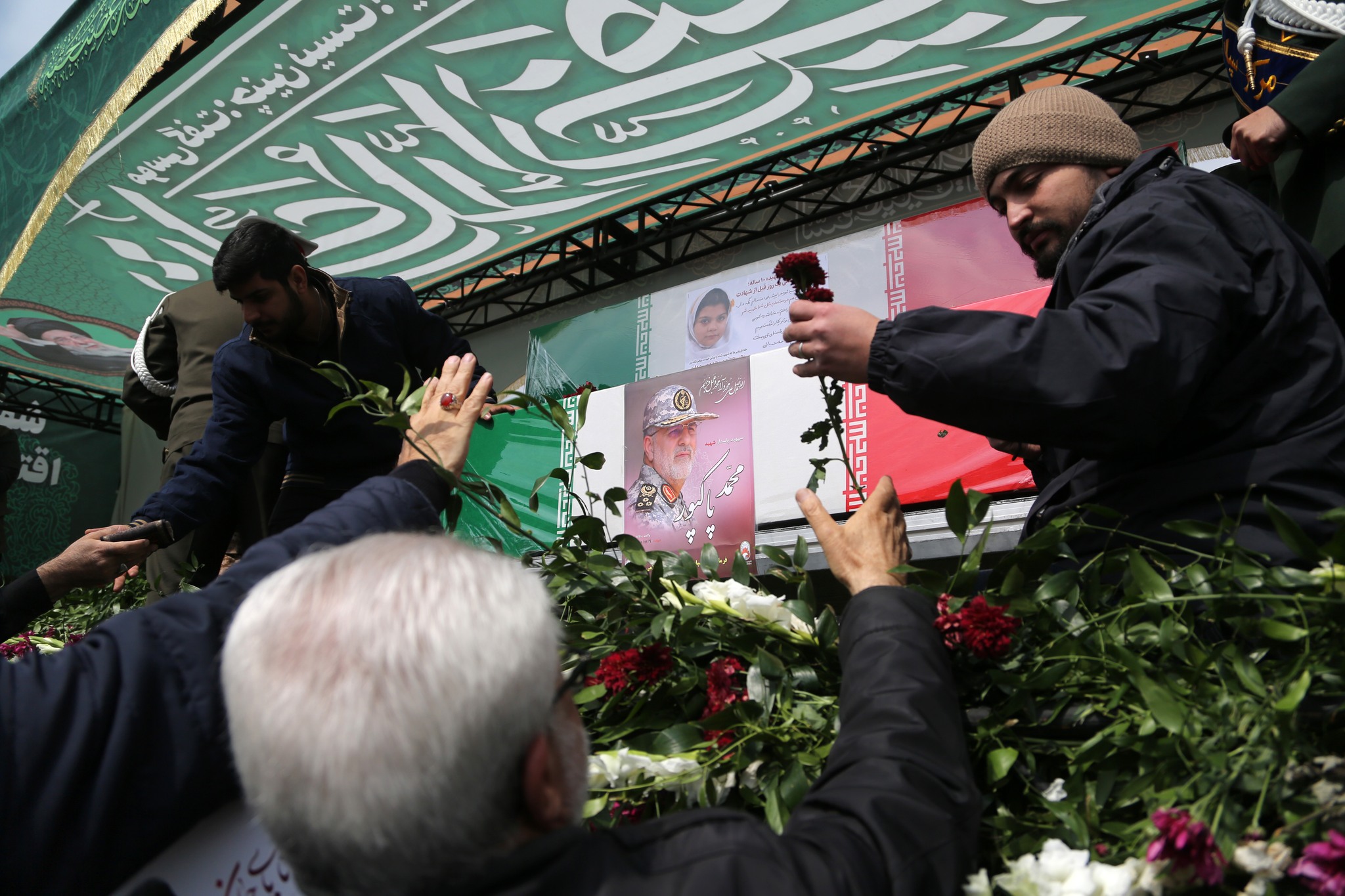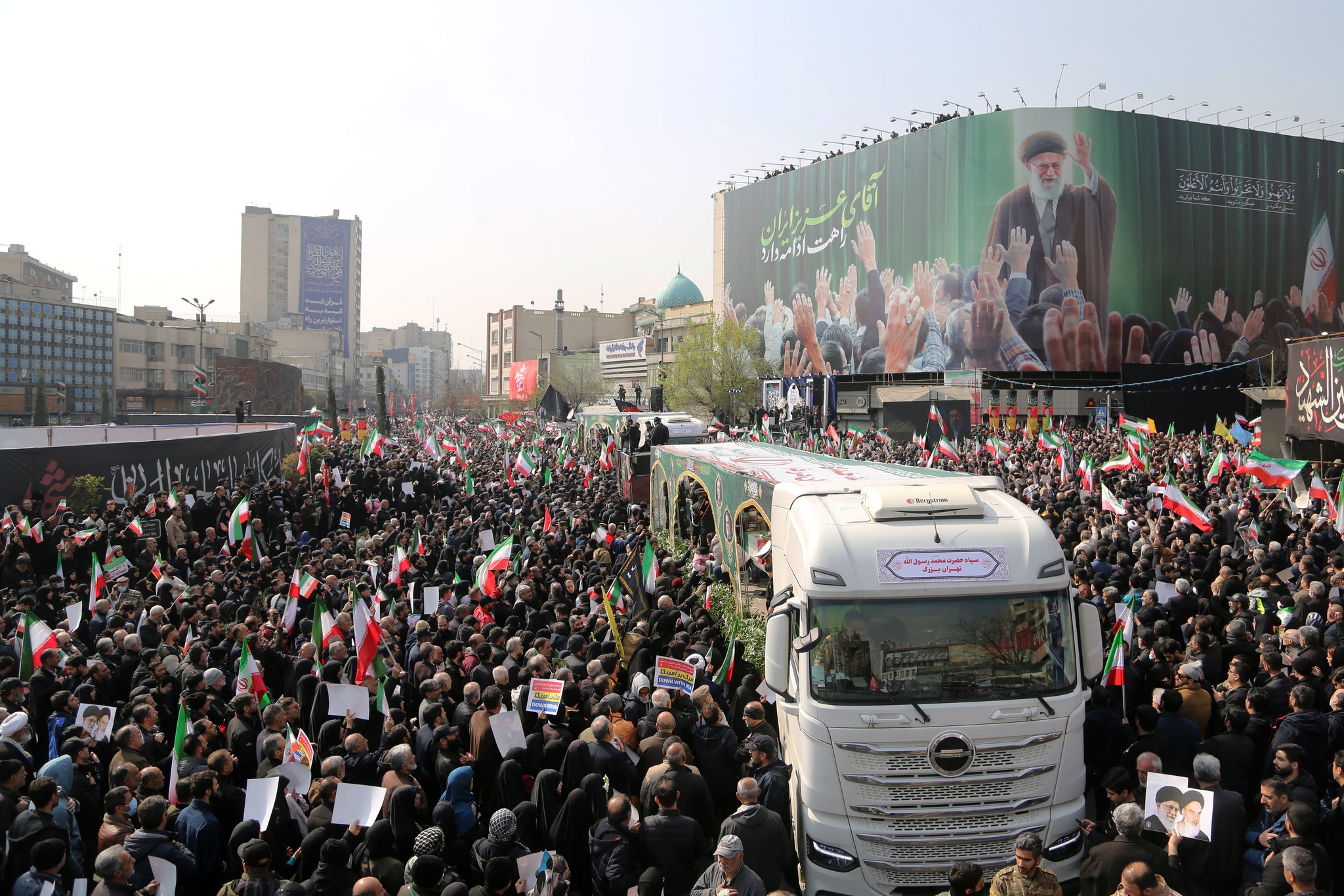 تجمّع الالاف من المواطنين في ساحة الانقلاب وسط العاصمة الايرانية طهران للمشاركة في مراسم تشييع قادة إيرانيين استشهدوا في هجمات أمريكية إسرائيلية استهدفت العاصمة. ووصلت إلى ساحة الثورة جثامين كل من، رئيس الأركان العامة عبد الرحيم موسوي، والقائد العام للحرس الثوري محمد باكبور، والأمين العام لمجلس الدفاع علي شمخاني، ورئيس الدعم اللوجستي للقوات المسلحة عزيز ناصر زاده، واللواء محمد شيرازي، الأمين العام لمكتب المرشد الإيراني.