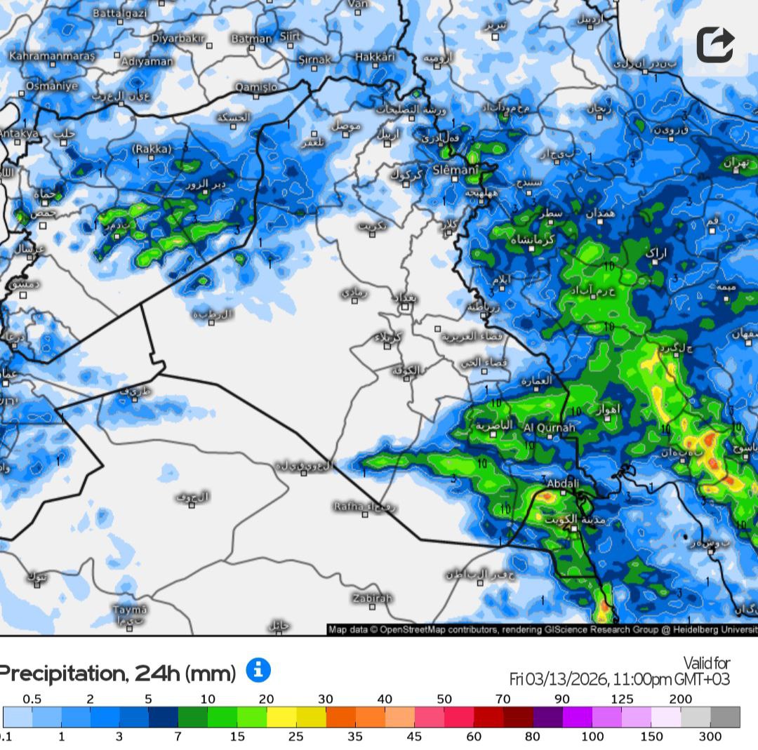 ‏وتكون الهطولات متفاوتة الشدة ومحلية أحياناً.بحسب رؤية المتنبئ الجوي حسين الاسدي