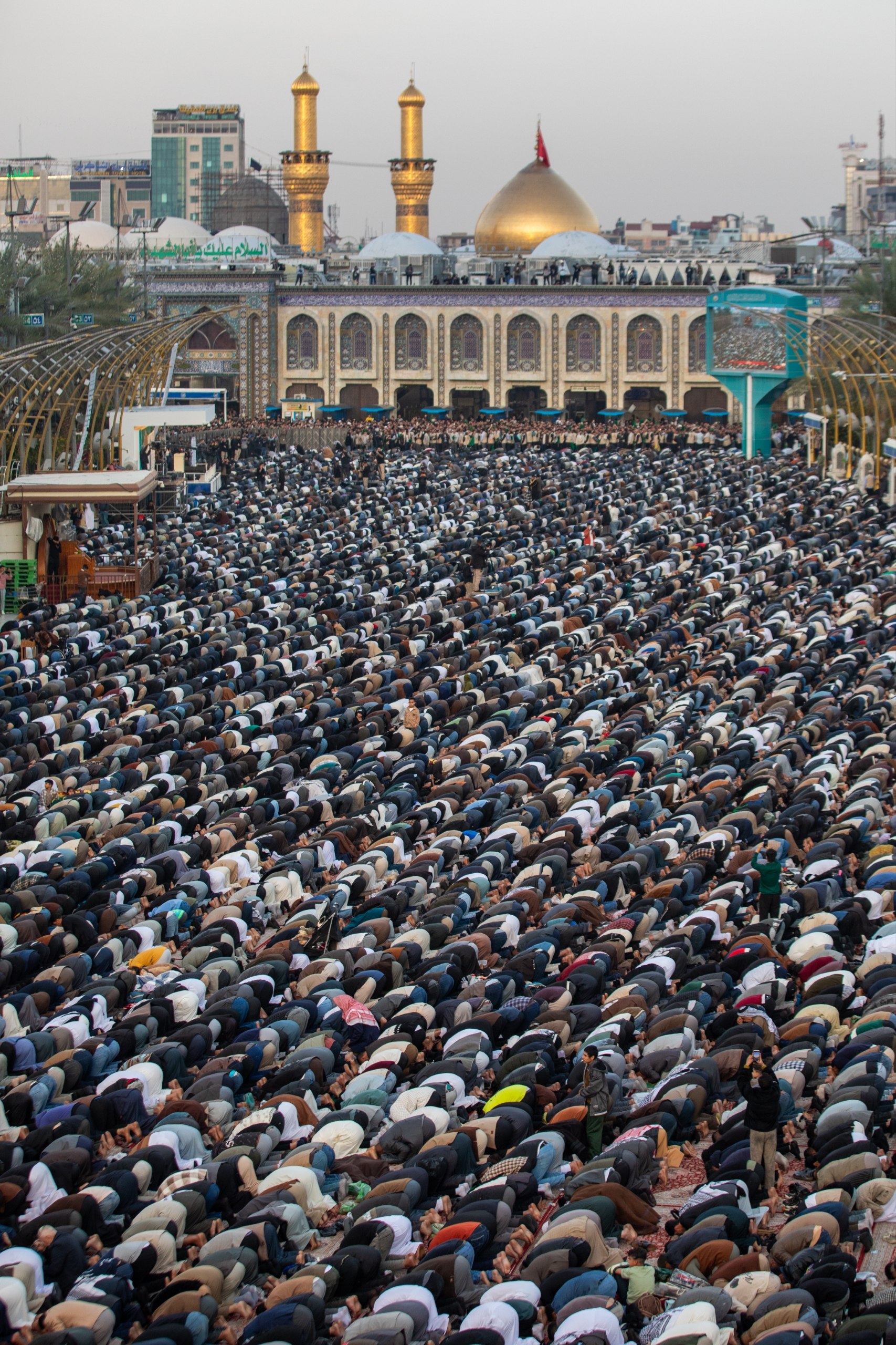 آلاف المصلين يؤدون صلاة عيد الفطر في كربلاء المقدسة (صور)