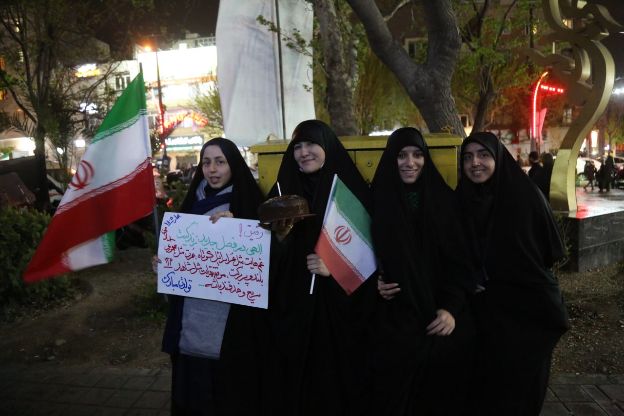 في طرف احدى التظاهرات وقفت فتيات ايرانيات هن " زهراء، روشان، نازين، هيلما، فاطمة، باران" يحتفلن بعيد ميلاد احداهن ويهتفن في التظاهرة وكان جوابهن لوكالة نون الخبرية ان" الشعب الايراني يصر على الحياة والسلم والتماسك والتعاون مع حكومته لان العدو يستهدف الجميع ومع شراسة الهجمات ما زلنا مستمرين منذ اسابيع في الحضور الى ساحات التظاهر لاثبات موقنا الحازم ضد من يروج لاخبار وتقارير اعلامية تدعي خلاف ذلك".