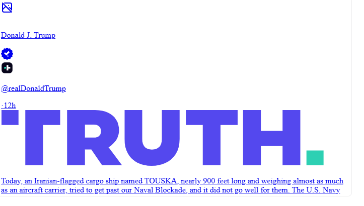 من جهتها، أعلنت القيادة المركزية الأميركية أن المدمرة "يو إس إس سبروانس" اعترضت السفينة "توسكا" أثناء توجهها إلى ميناء إيراني في انتهاك للحصار.