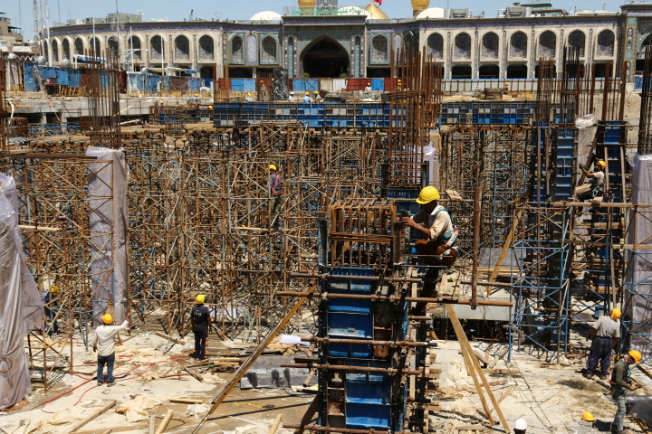 وقال مدير قسم مشاريع التوسعة في العتبة الحسينية المقدسة المهندس "حسين رضا مهدي" في تصريح خص به وكالة نون الخبرية اننا" اليوم في شهر ذي القعدة وتبقى على حلول شهر محرم الحرام اقل من شهرين، ومثلما وعدنا زائري الامام الحسين (عليه السلام)، وادارة العتبة الحسينية المقدسة بأن يكون العمل لا يقل عن (20) ساعة يوميا، وبحمد لله فإن العمل ومنذ اسبوعين اصبح (22) ساعة يوميا، حيث يبدأ العمل في الوجبة الصباحية من الساعة السابعة صباحا لغاية الساعة السادسة مساء، ويباشر العمل في الوجبة المسائية من الساعة السابعة ليلا حتى الساعة السادسة صباحا، اي بمعدل (22) ساعة عمل فعلي، بل حتى وجبات الطعام المقدمة للعاملين اصبحت جاهزة بطريقة (السفري) داخل الموقع، حيث كانت الطريقة سابقا ذهاب العاملين الى مطعم المشروع وهذا يستغرق من وقت العمل، اما الآن فيتناولون طعامهم في موقع عملهم، اما ما يتعلق بعدد الملاكات الهندسية والفنية العاملة فكانت في شهر رمضان المبارك (70) شخص فقط، واصبح العدد اليوم اكثر من (310) شخص تنفيذي فعلي بين مهندس وفني من غير الاداريين والمحاسبين والساندين الذين يصل عددهم الى مئة شخص، وموزع العمل والمهام على (5) متعهدين، وكل متعهد يشرف على (50 ــ 60) شخص يعملون في جزء من المشروع يسمى (مقطع) محدد، ومساحة (7000) الاف متر مربع قسمت على خمسة متعهدين مسؤولين عن انجاز العمل فيها بطريقة توزيع المهام بعد ان وفرت لهم جميع متطلبات العمل البشرية والآلية ومواد العمل لينجز الف متر مربع، ونحن ننظر الى (7000) متر مربع تنجز في وقت واحد، ومنها نستطيع تجاوز اي عائق او حادث يعرقل العمل فينحسر في مقطع واحد بحل اسهل بدل ايقاف العمل بكامل المساحة التي تكون المعالجة فيها اصعب".