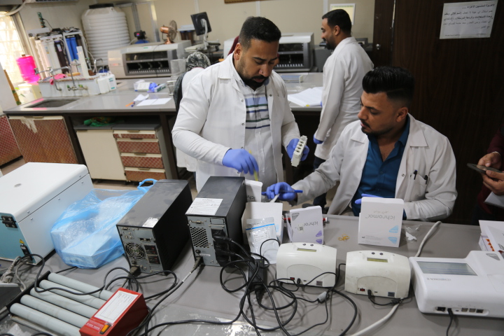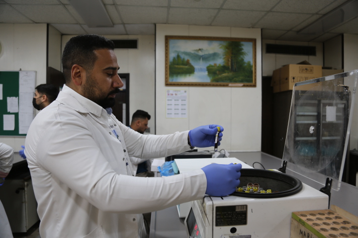 واضاف ان" المختبر مجهز بمختلف الاجهزة والمعدات المختبرية التي استوردت من ارقى المناشئ العالمية، ونصحبها معنا محمولة الى المحافظة التي يزورها الوفد الطبي، ومعها جميع مواد التحاليل المختبرية التي نحتاجها، ونعمد الى اجراء التحاليل بالطريقة السريعة لمحدودية الوقت اثناء زيارة المحافظات ليوم واحد فقط، وتكون مطولة في المستشفى"، مشيرا الى ان" التحاليل المختبرية تسهم بنسبة (80) بالمئة في مساعدة الطبيب على دقة تشخيص المرض عند المراجع او اجراء العملية الجراحية، ويساعد الكشف السريري على ان تكون النسبة اكثر من (80) بالمئة، وعلى سبيل المثال فإن تحليل الكبد الفايروسي الذي اصبح شائعا، لابد ان نجريه بدقة متناهية، لان من الصعب اجراء العملية الجراحية له كونه يحتاج الى اجراءات تعقيم اكثر، وتفريغ صالة العمليات ويتحتم علينا الدقة خصوصا في تحاليل اجراء العمليات الجراحية، واكثر مدة بقينا فيها نعمل في زيارة وفد العتبة الحسينية الطبي كانت في ناحية برطلا بمحافظة نينوى، حيث كان السفر لمدة (8) ساعات، حيث باشرنا بالعمل من الساعة التاسعة صباحا وانهينا عملنا عند الساعة الثالثة بعد منتصف الليل".
